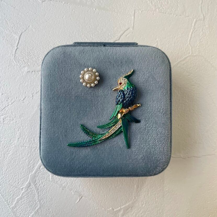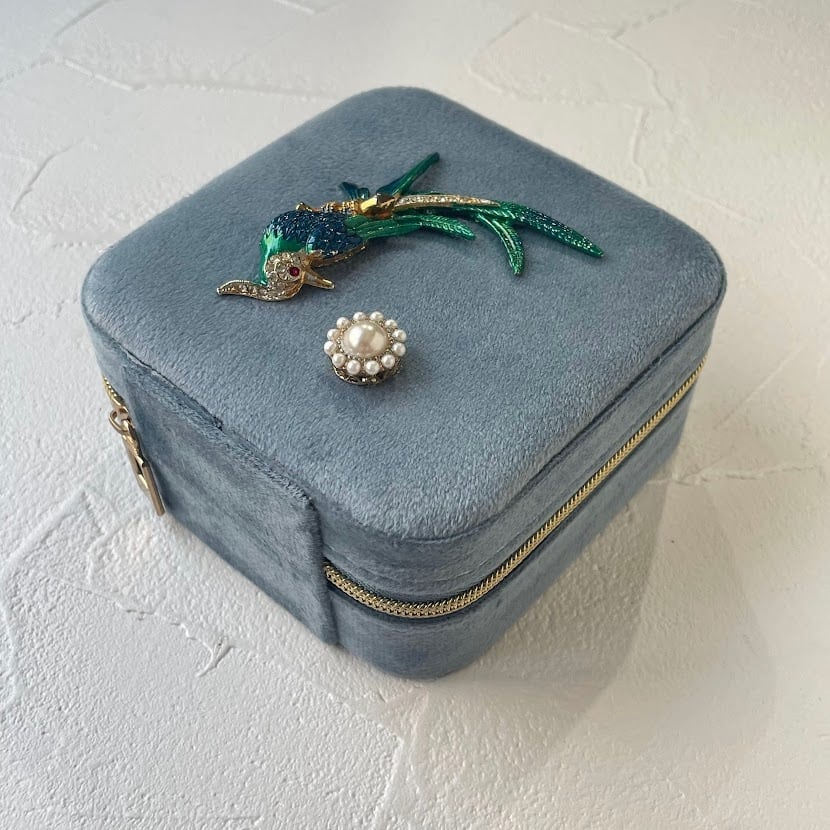 新品のジュエリーボックスに、ユーズドアクセサリーのモチーフ部分を装飾したアップサイクルアイテム。