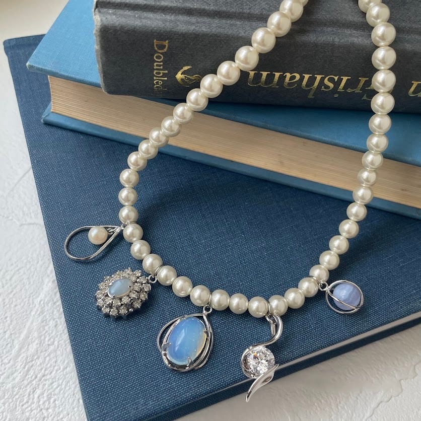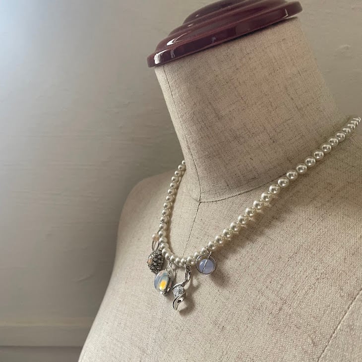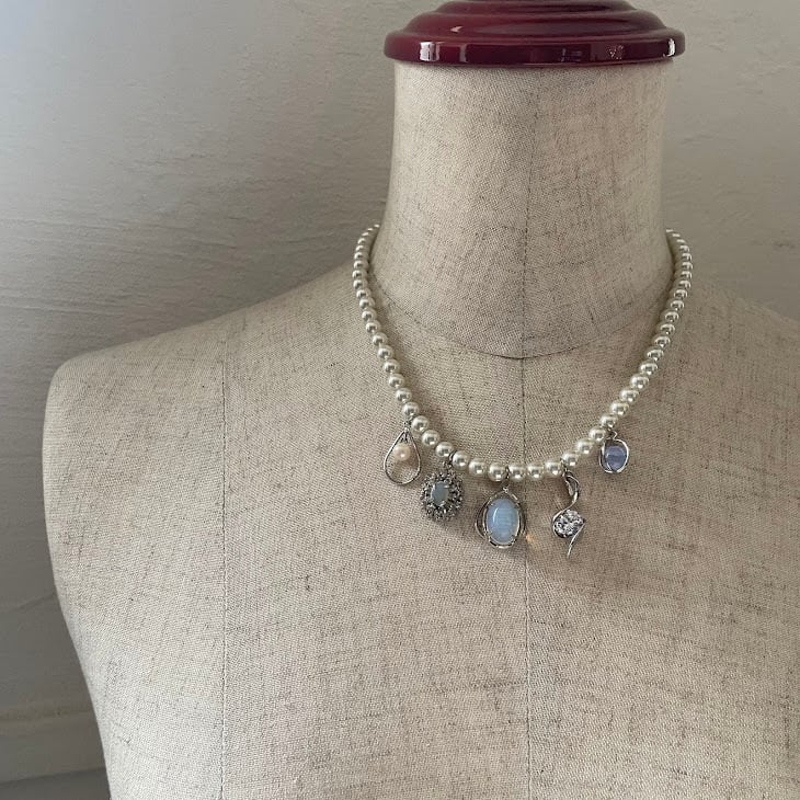 クラッシックなパールに個性豊かなデザインのUSEDチャーム達を組み合わせた、ModernLoopオリジナルのアップサイクルネックレスです。