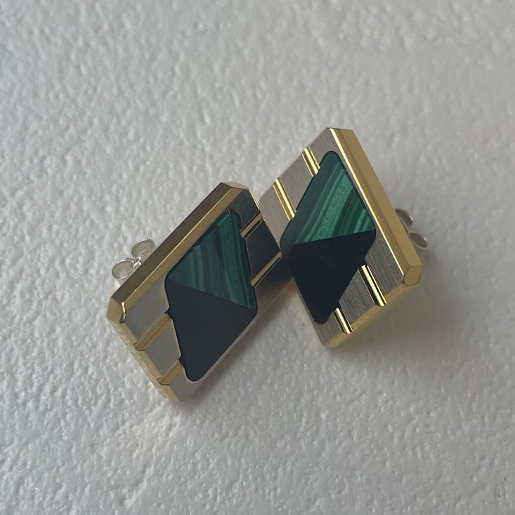 ヴィンテージのカフスをリメイクしたパーツに、シルバー925を組み合わせたアップサイクルアイテム。