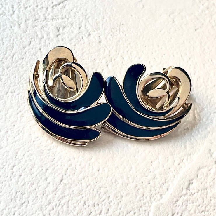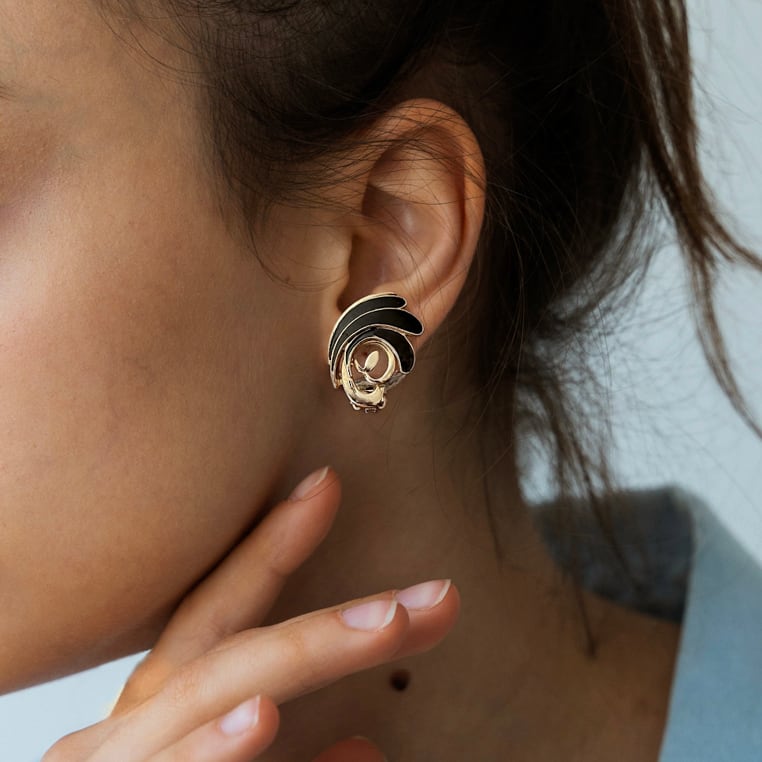 ゴールドベースに艶感あるブラックのカラーが雰囲気あるイヤリングです。