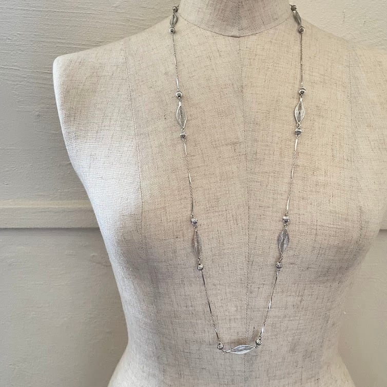 金属を糸状にして、特殊な技法で作られているフィグリーのパーツが魅力的なネックレスです。