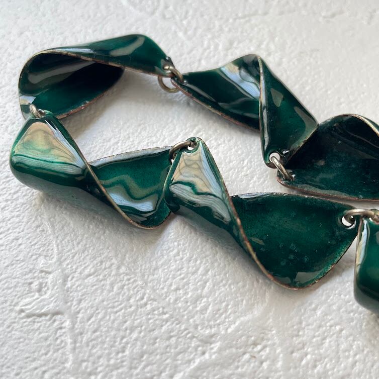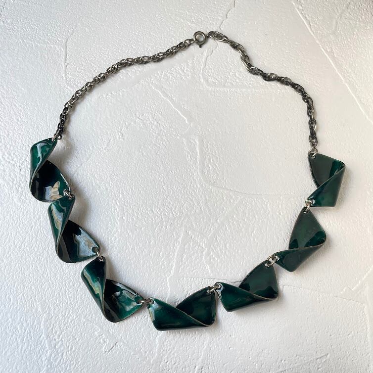 艶感あるエナメルの色合いと、動きのあるデザインが魅力のネックレスです。