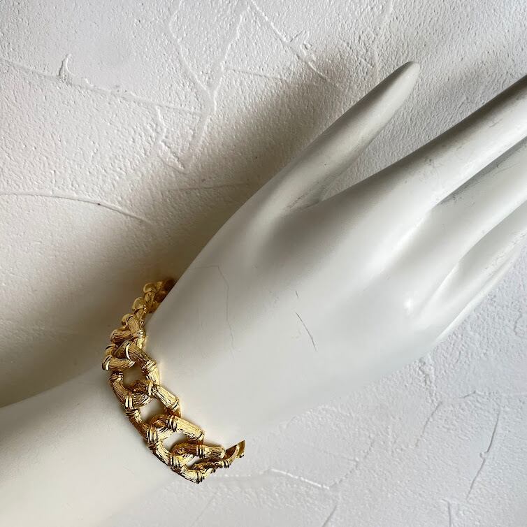 テクスチャーの入った雰囲気あるメタルパーツを繋げた、存在感のあるブレスレットです。