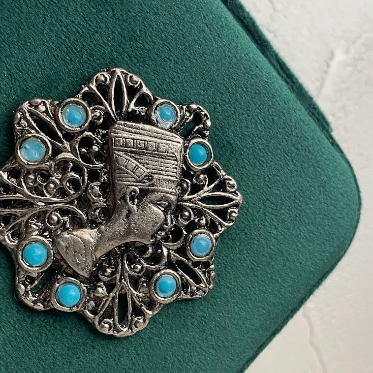 本製品はUSEDブローチのモチーフ部分を装飾として使用しています。装飾部分に強い力を加えたり、無理に押したりすると破損する恐れがありますので、取り扱いにはご注意ください。