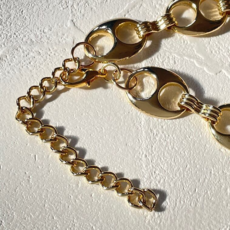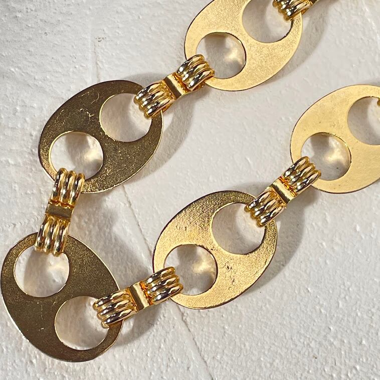 抜け感あるオーバルデザインを繋げた、存在感のあるネックレスです。