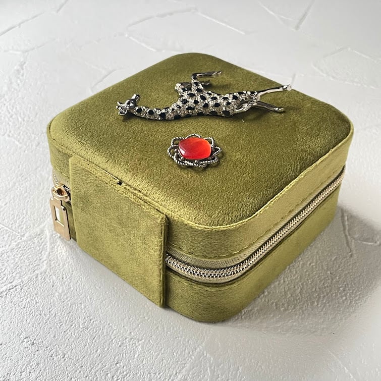 新品のジュエリーボックスに、ユーズドアクセサリーのモチーフ部分を装飾したアップサイクルアイテム。
