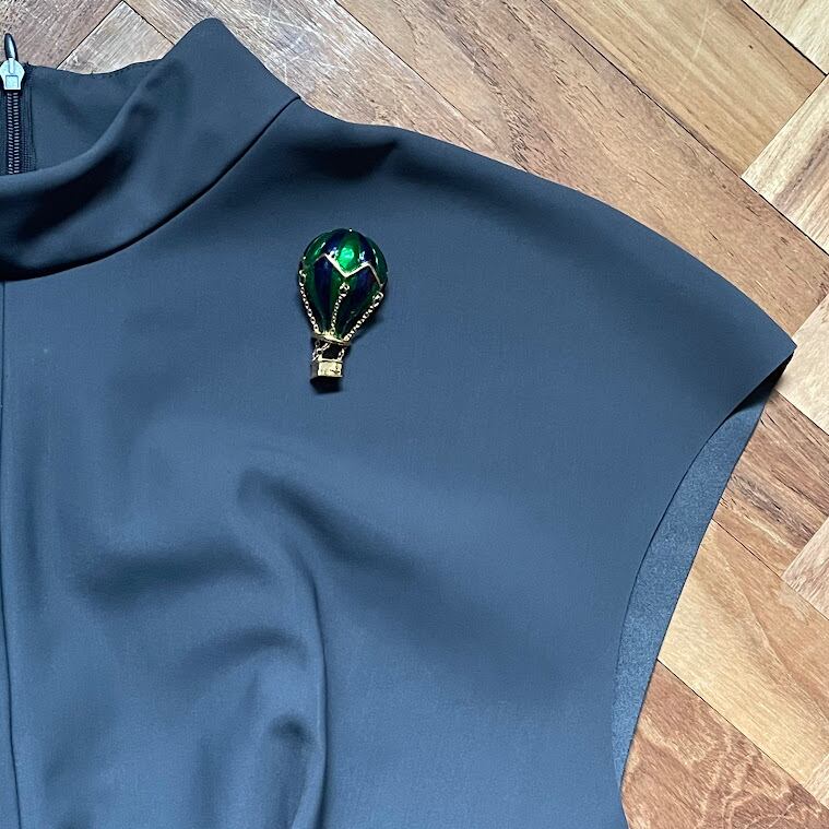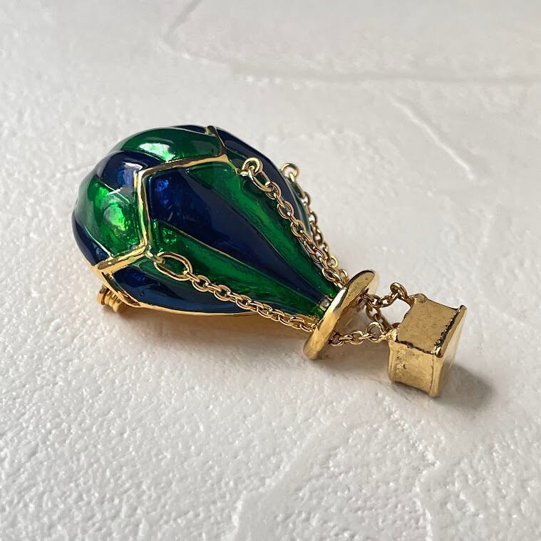 バルーンから下がるゴンドラ部分が、揺れる仕様になっている、ギミックの細かいブローチです。