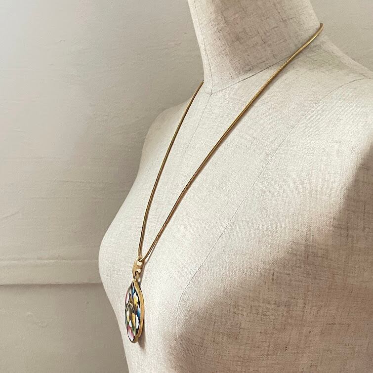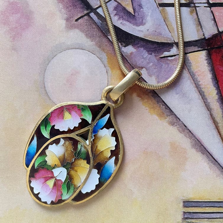 鮮やかな色合いの花が描かれた艶感あるエナメルのネックレスです。