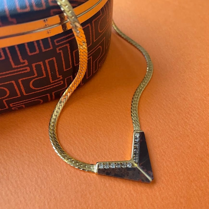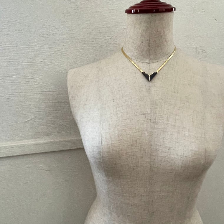 ブラウンの天然石が雰囲気あるVラインのネックレスです。
