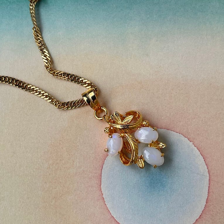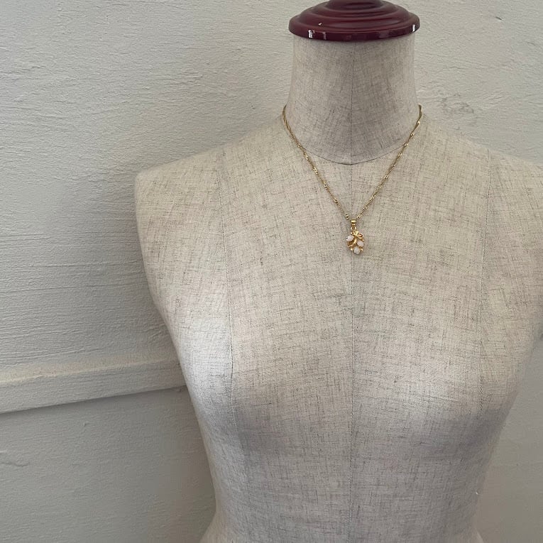 ボタニカルデザインのベースに木の実のように入れられたオパールが上品なネックレスです。