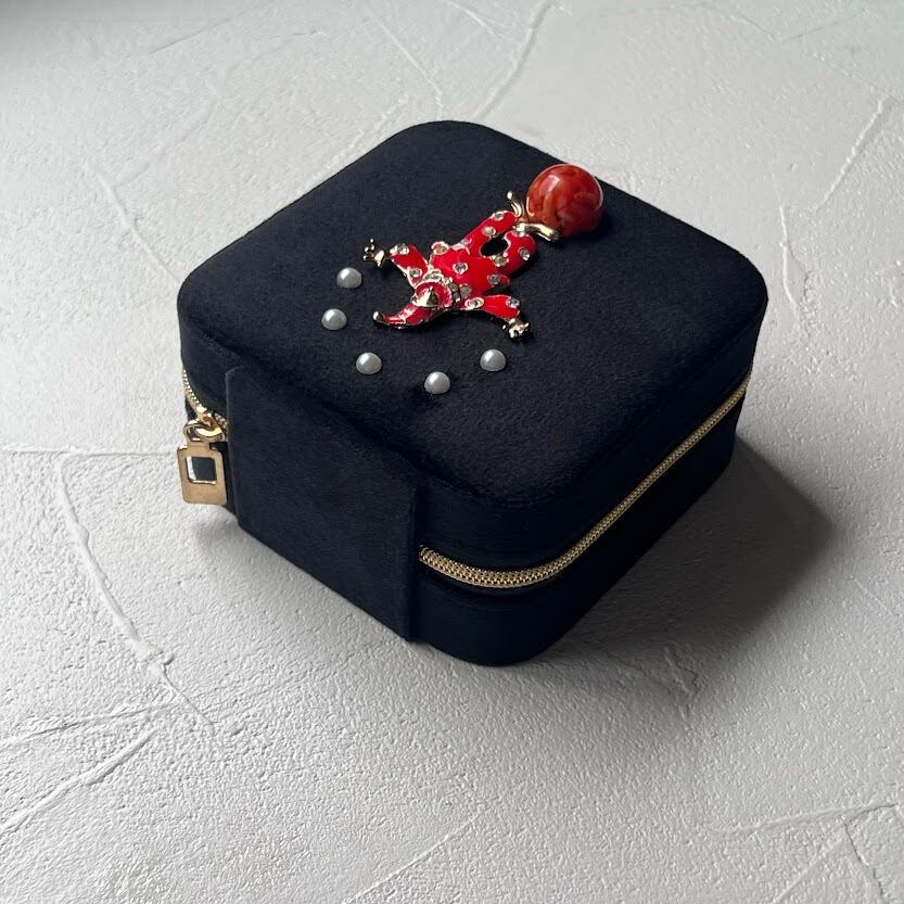 新品のジュエリーボックスに、ユーズドアクセサリーのモチーフ部分を装飾したアップサイクルアイテム。