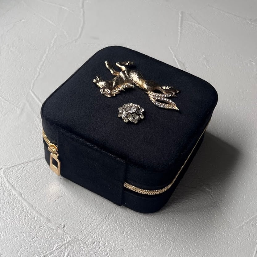 新品のジュエリーボックスに、ユーズドアクセサリーのモチーフ部分を装飾したアップサイクルアイテム。