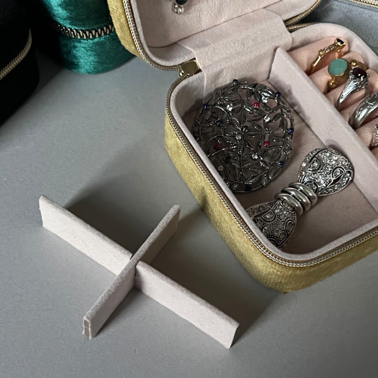 仕切りは取り外し可能で、アクセサリーだけでなく小物の収納にも活用できます。