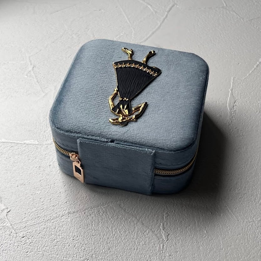 新品のジュエリーボックスに、ユーズドアクセサリーのモチーフ部分を装飾したアップサイクルアイテム。