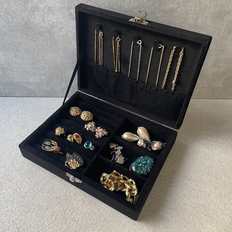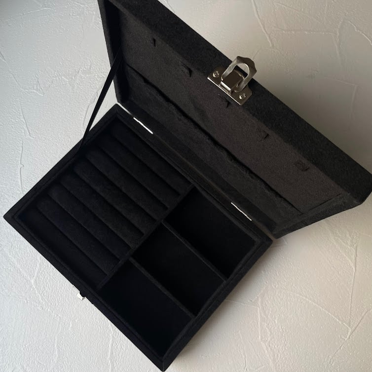 ボックスは十分な収納力があり、ネックレスやピアス、リングなど様々なアクセサリーをしっかりと収納できます。