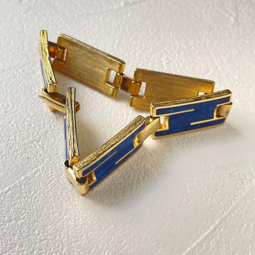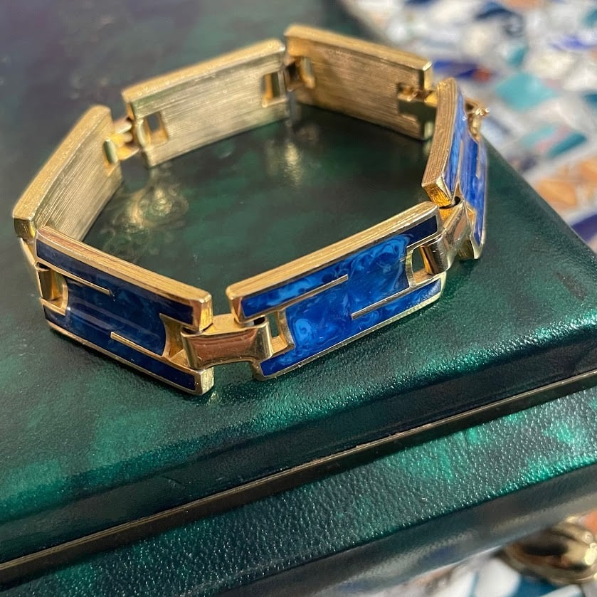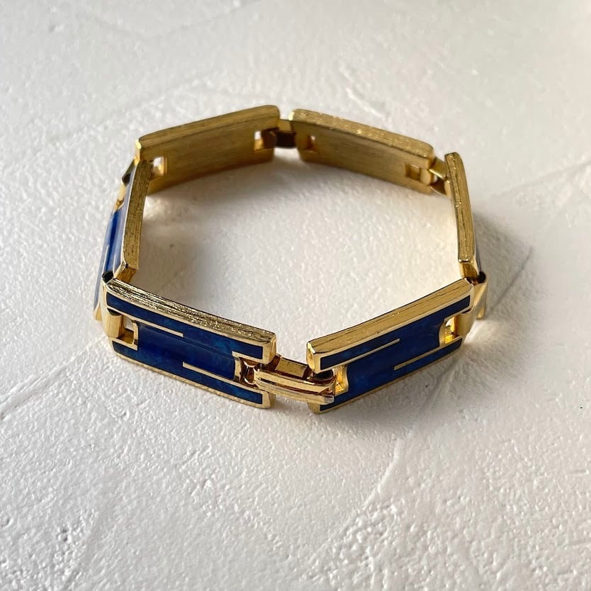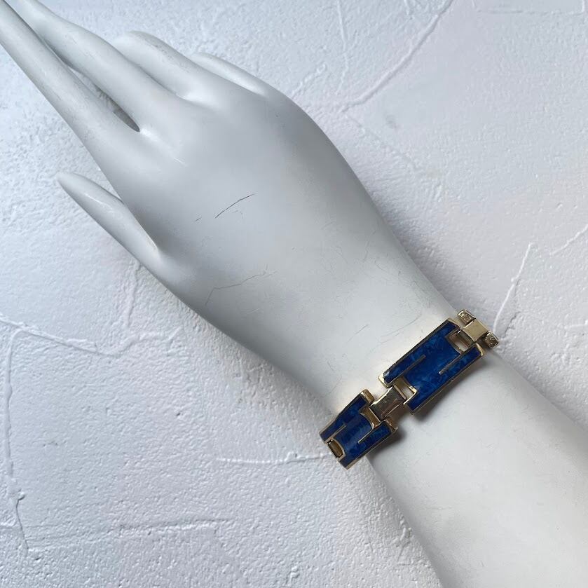 マーブル柄のデザインが雰囲気あるメタルのブレスレットです。