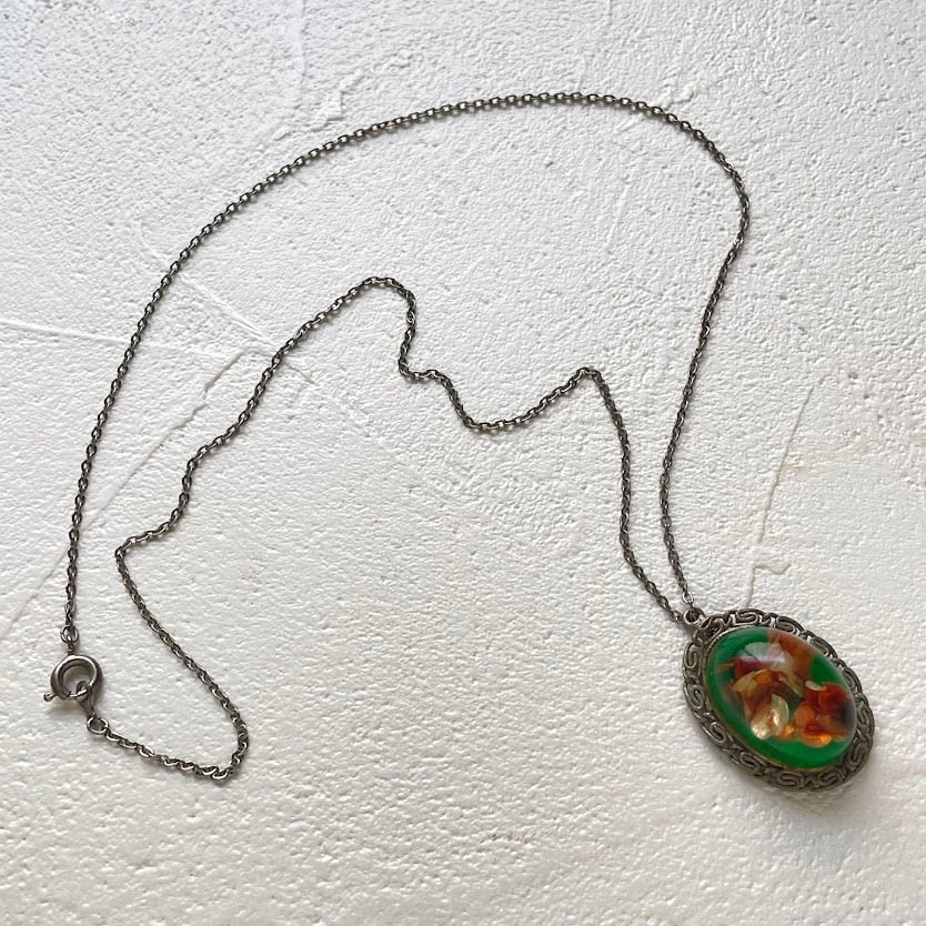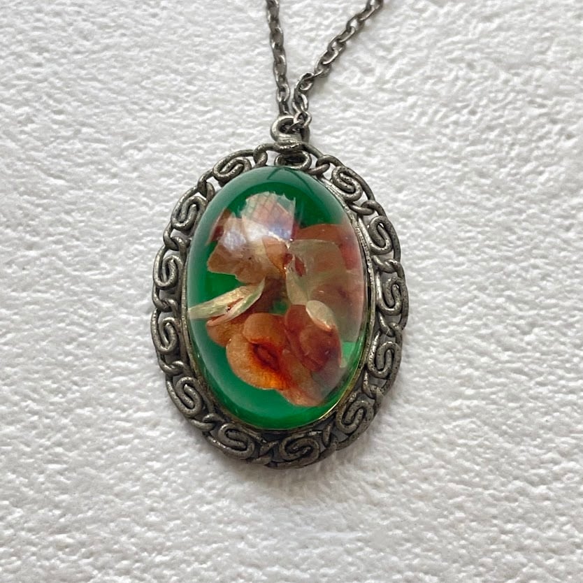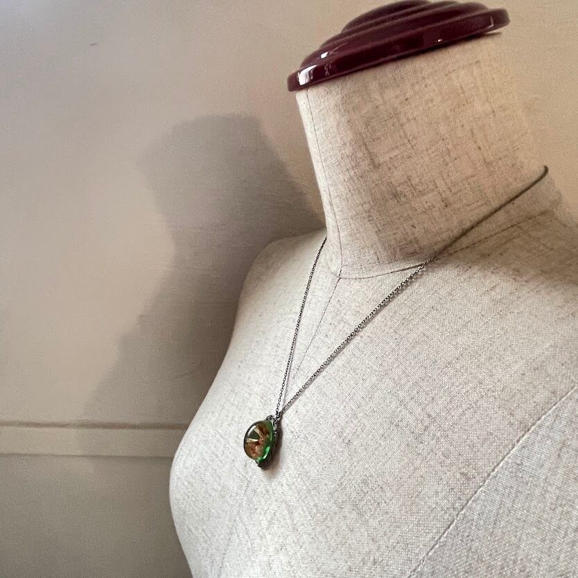 本物の花が封入された、グリーンの色合いが雰囲気あるネックレスです。