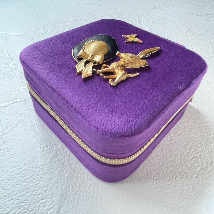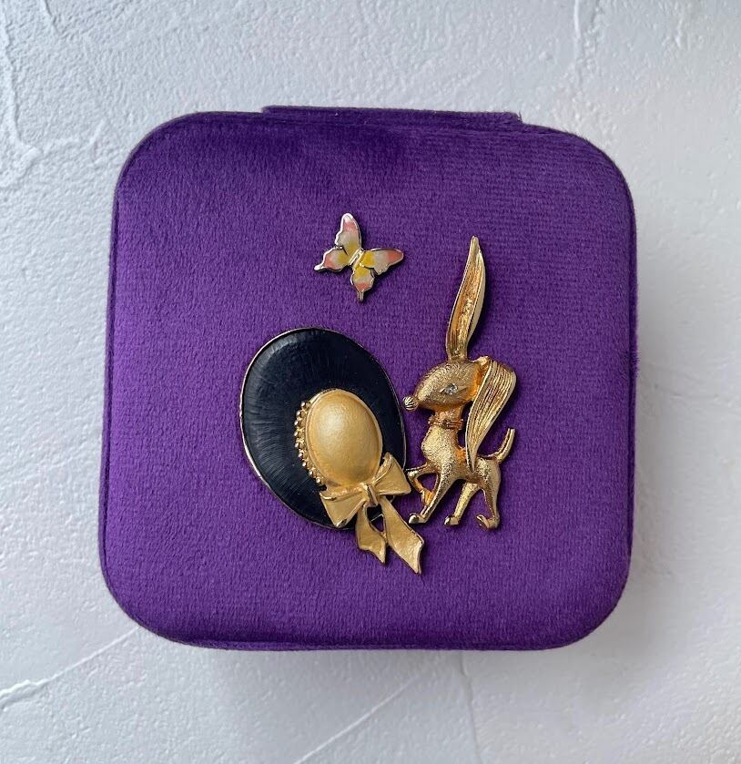 新品のジュエリーボックスに、ユーズドアクセサリーのモチーフ部分を装飾したアップサイクルアイテム。