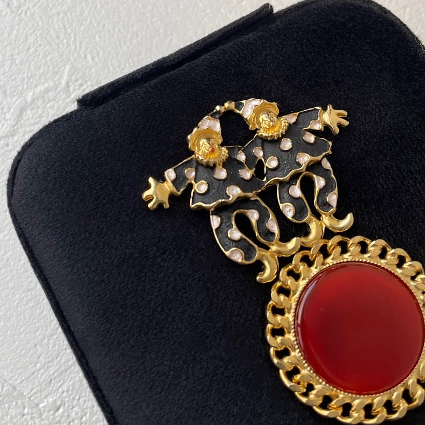 本製品はUSEDブローチのモチーフ部分を装飾として使用しています。装飾部分に強い力を加えたり、無理に押したりすると破損する恐れがありますので、取り扱いにはご注意ください。