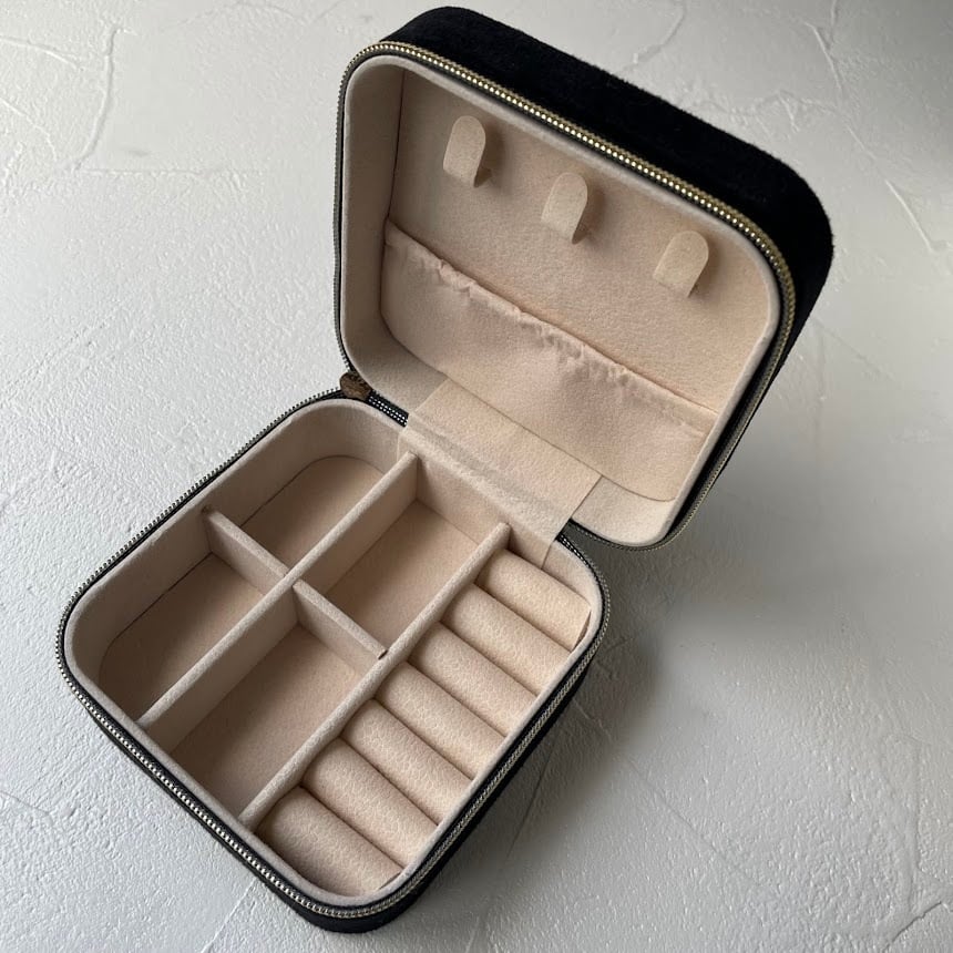 ボックスはコンパクトながらも収納力に優れ、カバンやスーツケースにもすっきり収まるサイズ感です。