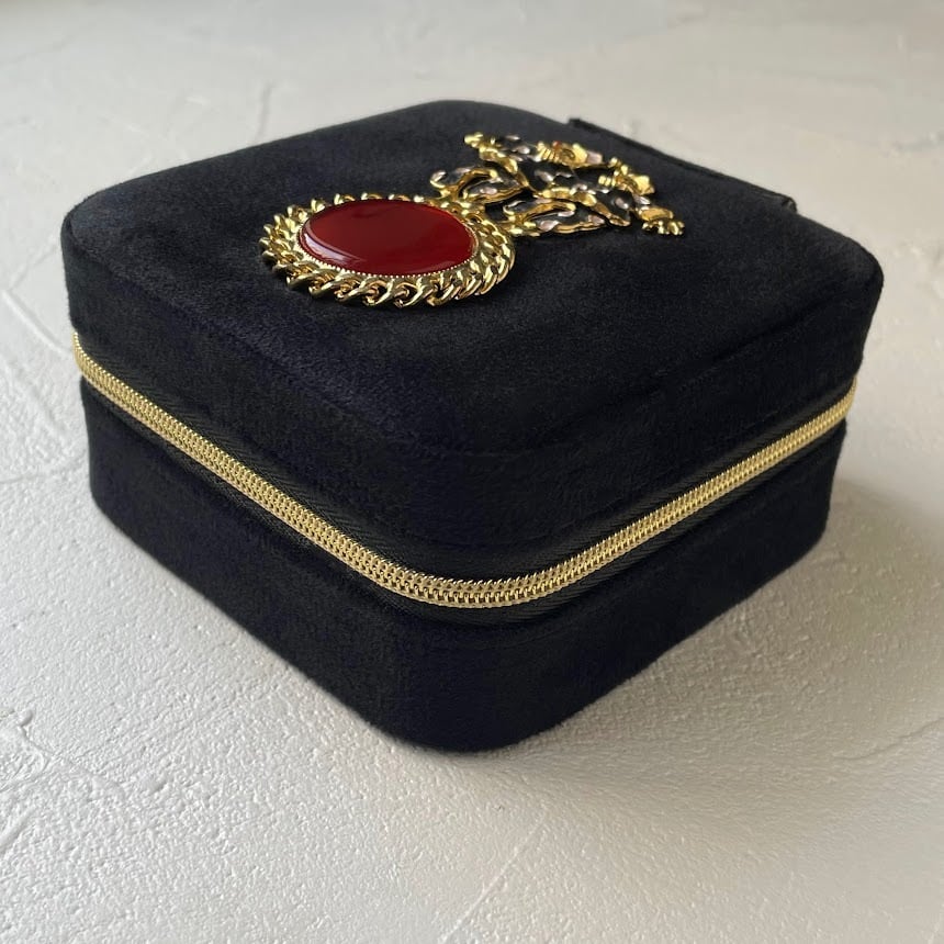 新品のジュエリーボックスに、ユーズドアクセサリーのモチーフ部分を装飾したアップサイクルアイテム。