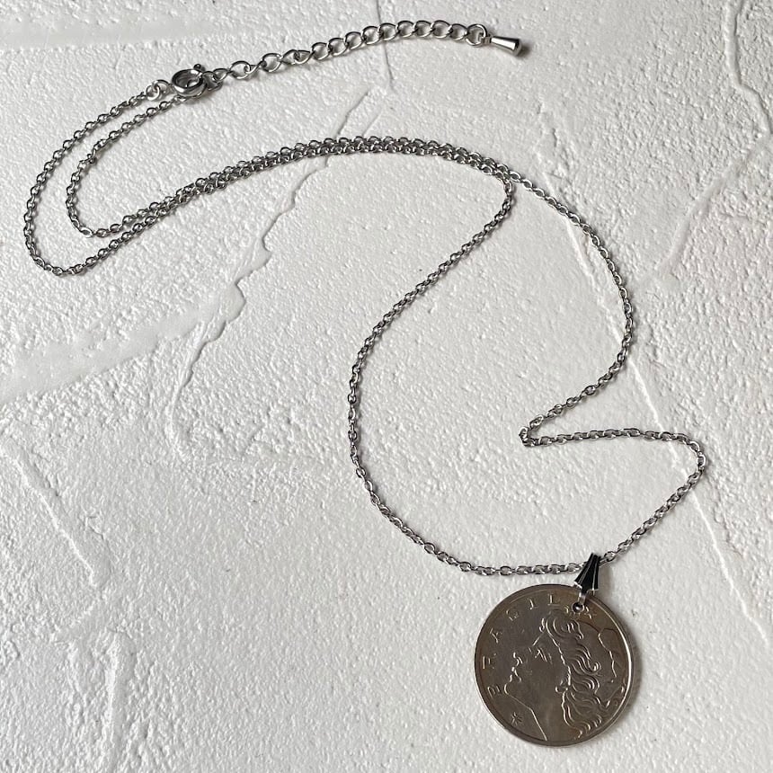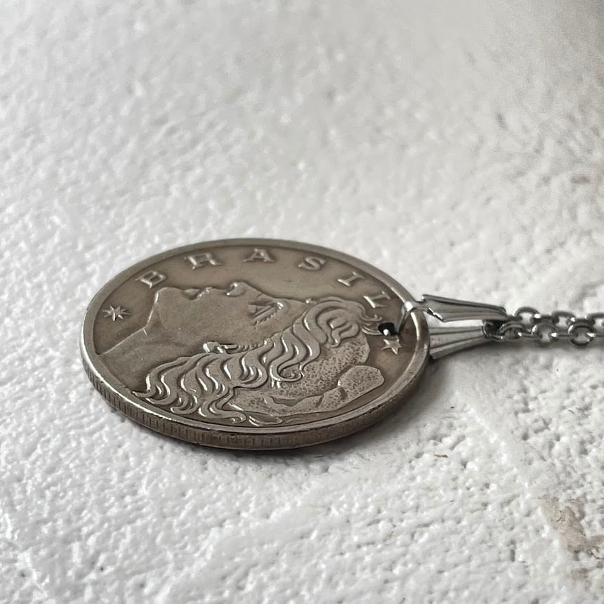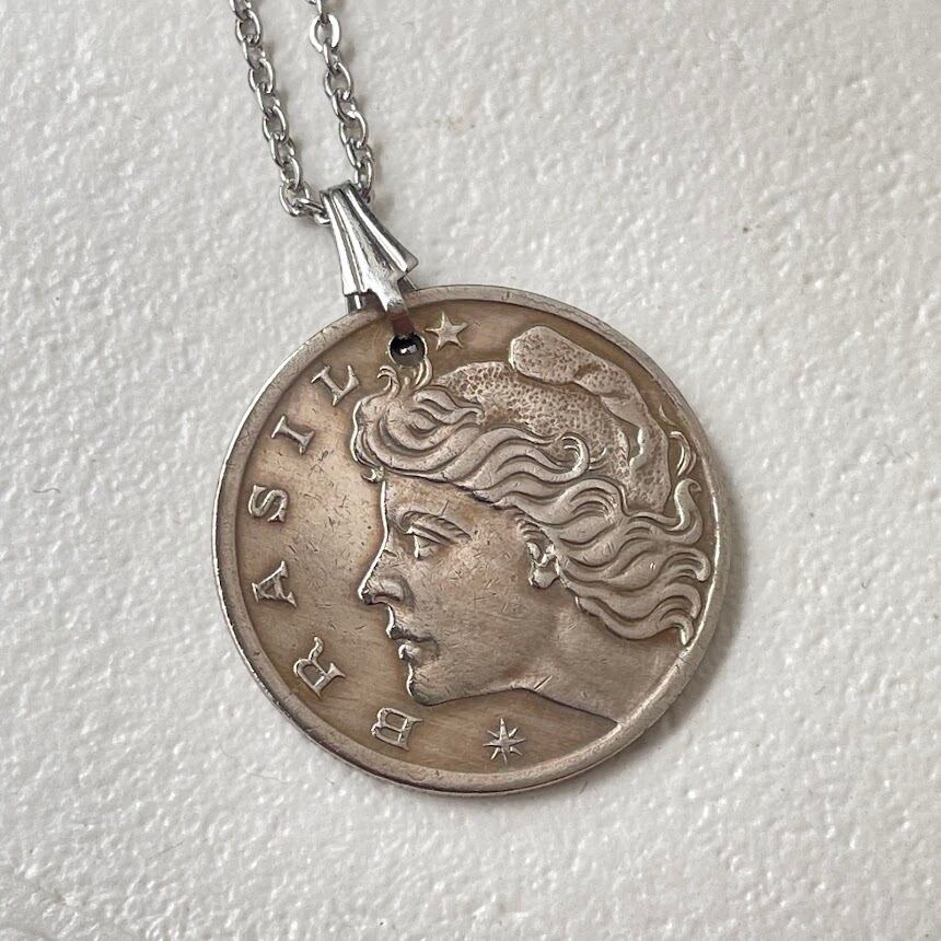 ブラジルで1970年に発行されたヴィンテージコインをリメイクして作られた、ハンドメイドのネックレスです。