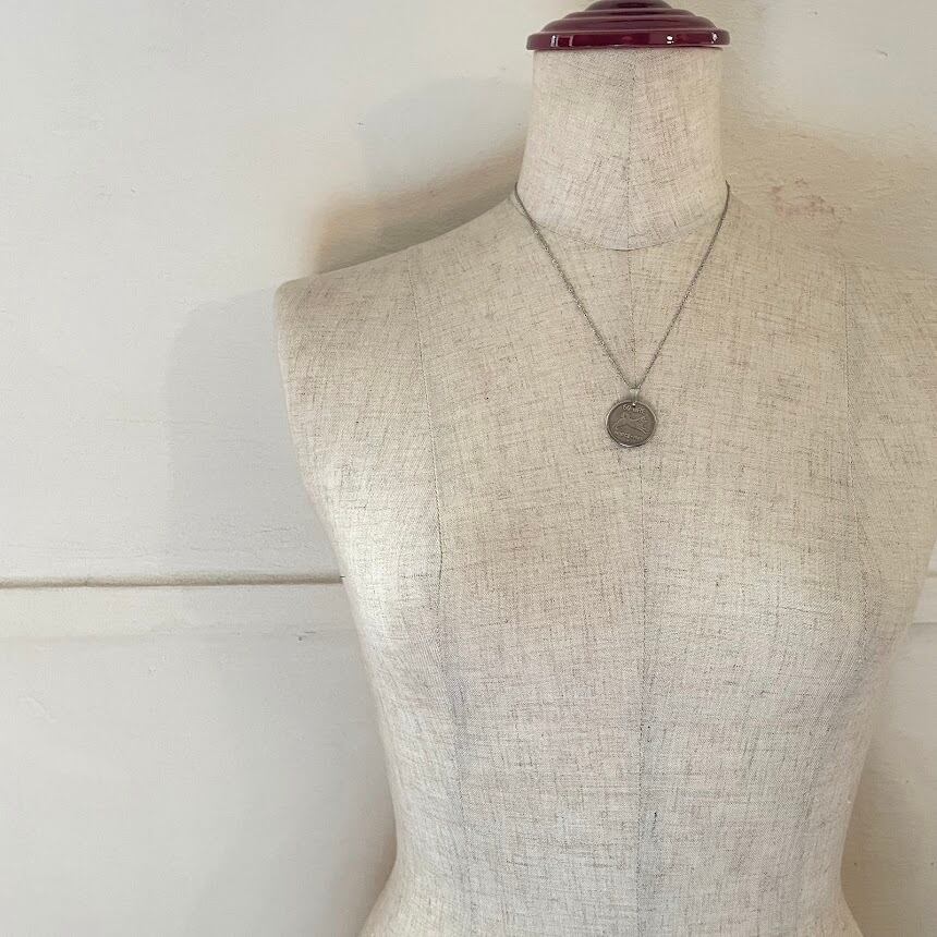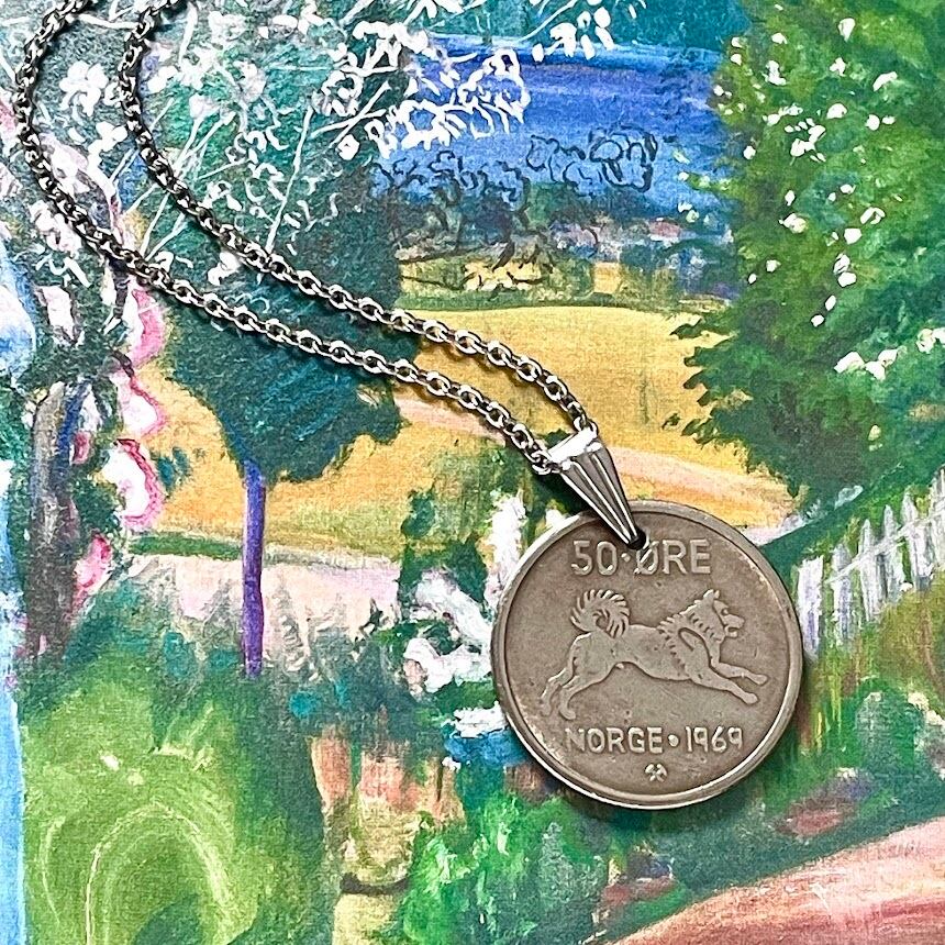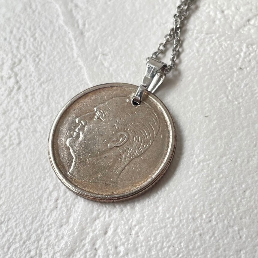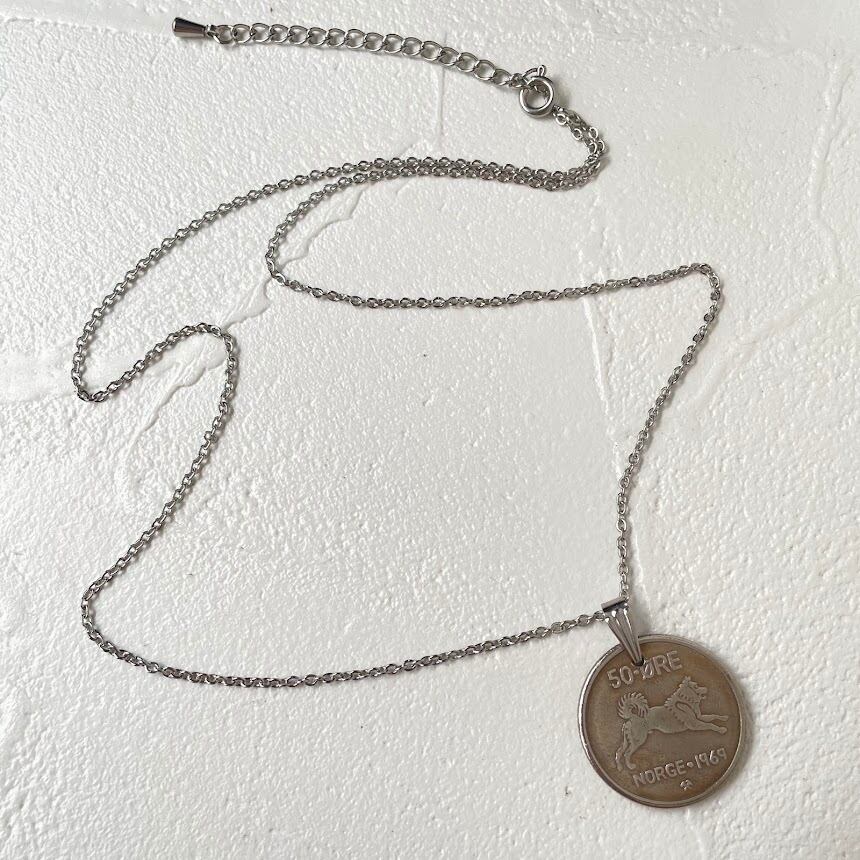 ノルウェーで1969年に発行されたヴィンテージコインをリメイクして作られた、ハンドメイドのネックレスです。