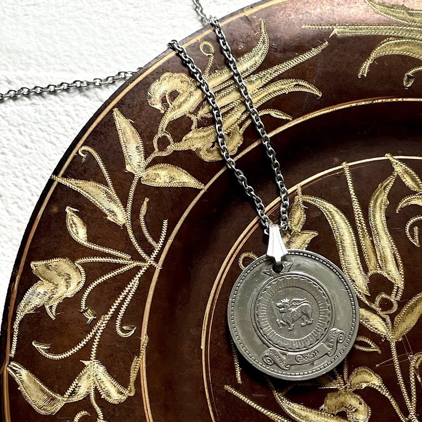 スリランカで1971年に発行されたヴィンテージコインをリメイクして作られた、ハンドメイドのネックレスです。