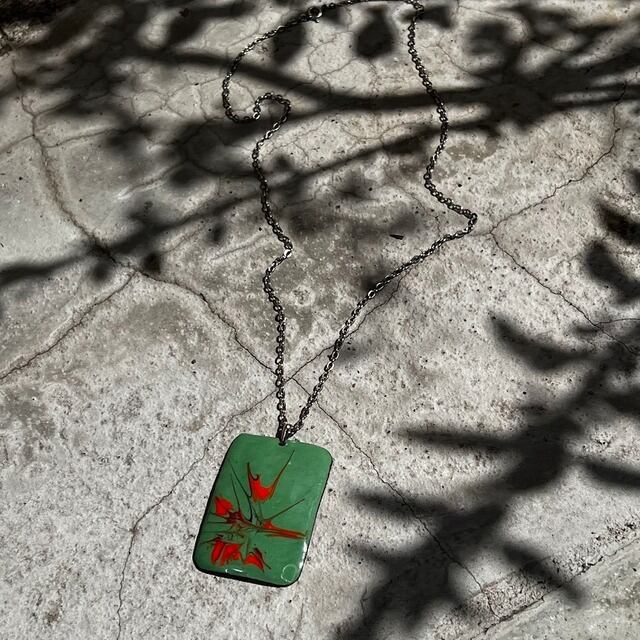 ヴィンテージ感ある、カラーと柄が素敵なワントップのネックレスです。