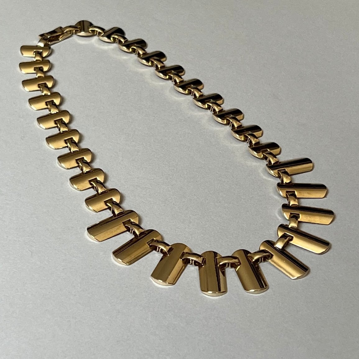 扇状に広がった形が、コーディネートに華やかさをそえるネックレスです。
