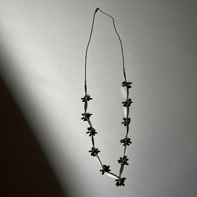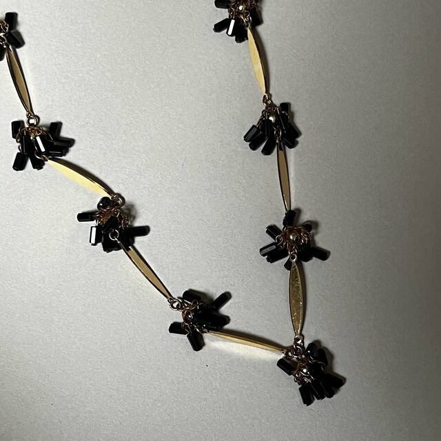 ブラックのビーズの束が、花のように見えるネックレスです。