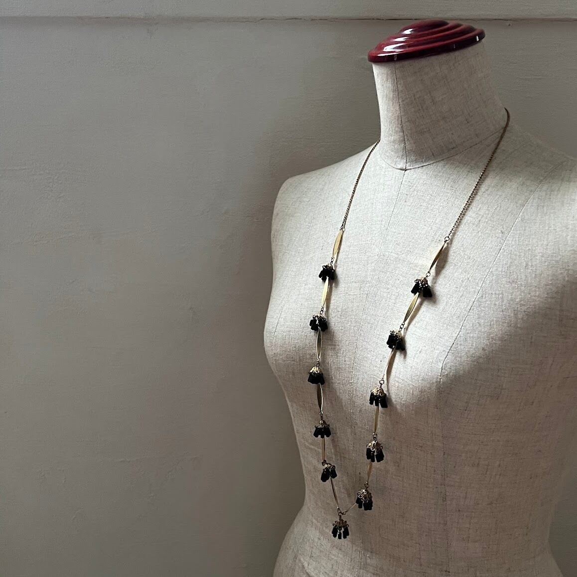 ロング ステーション ブラックビーズ ネックレス《N-0084》