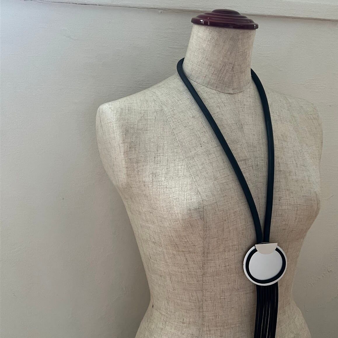 柔らかなラバーコードを使った、インパクトあるデザインが魅力のネックレスです。
