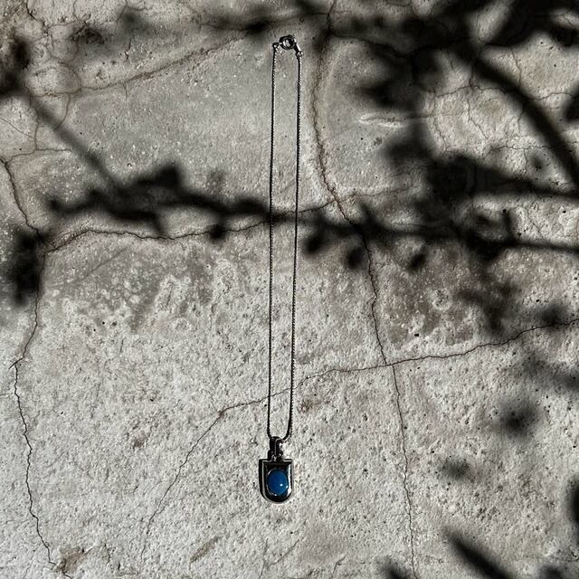 ストーンをはめ込んだ、ネイティブ感あるデザインのショートネックレスです。