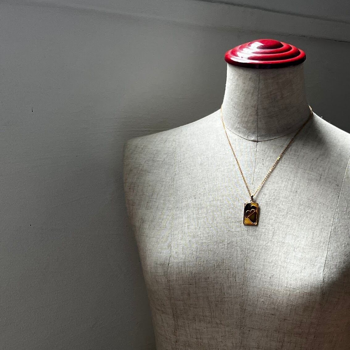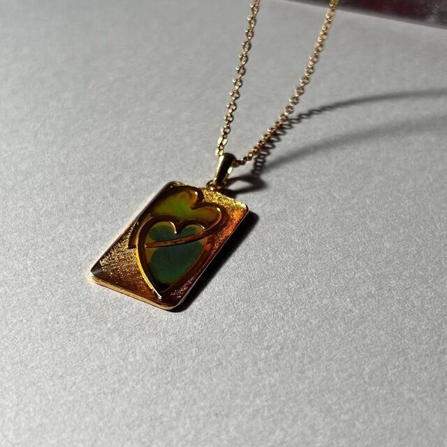 ハートの部分が温度によって、グリーンやブラウンに変わる仕様になっているネックレスです。