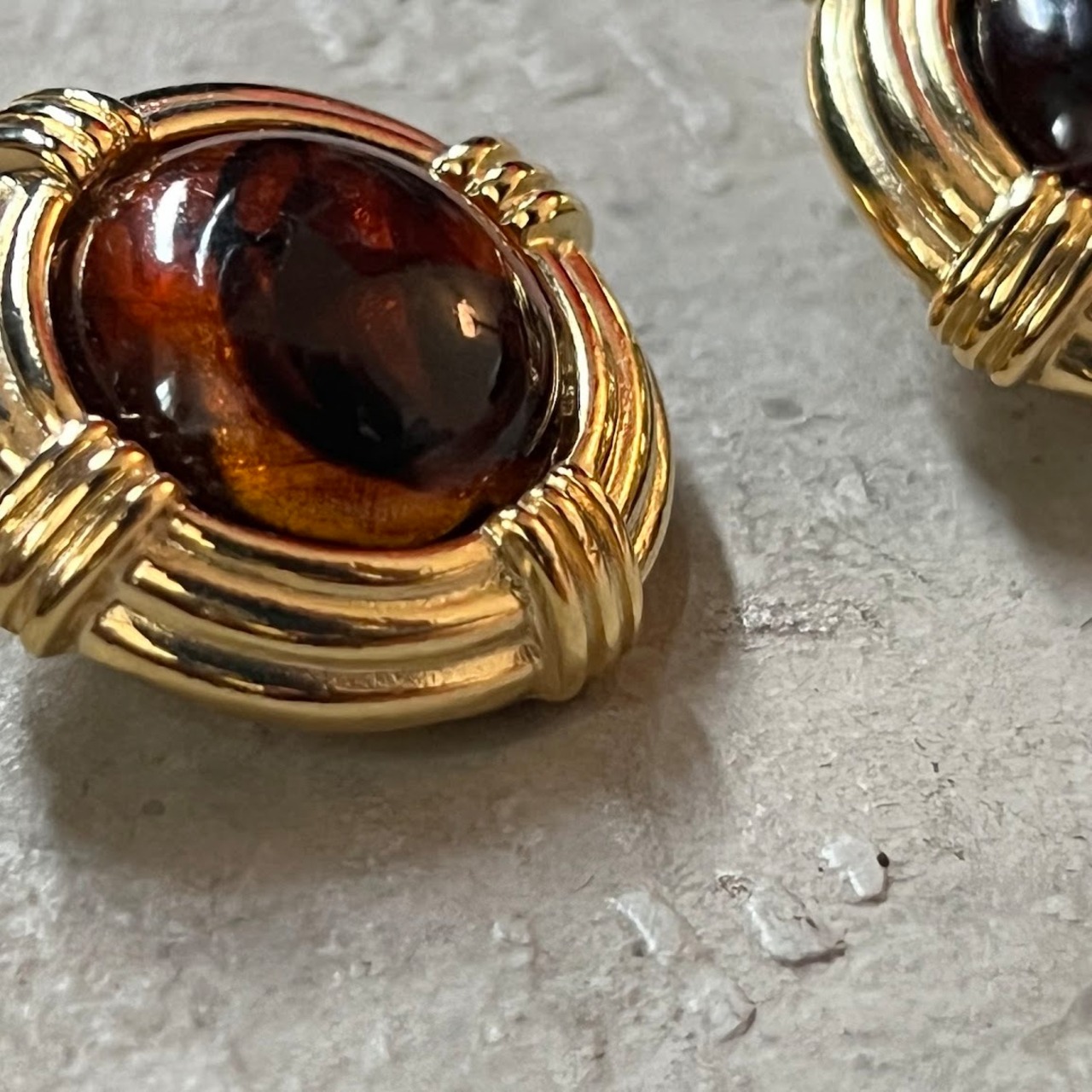 クラシカル アンバーカラー イヤリング 《E-0089》