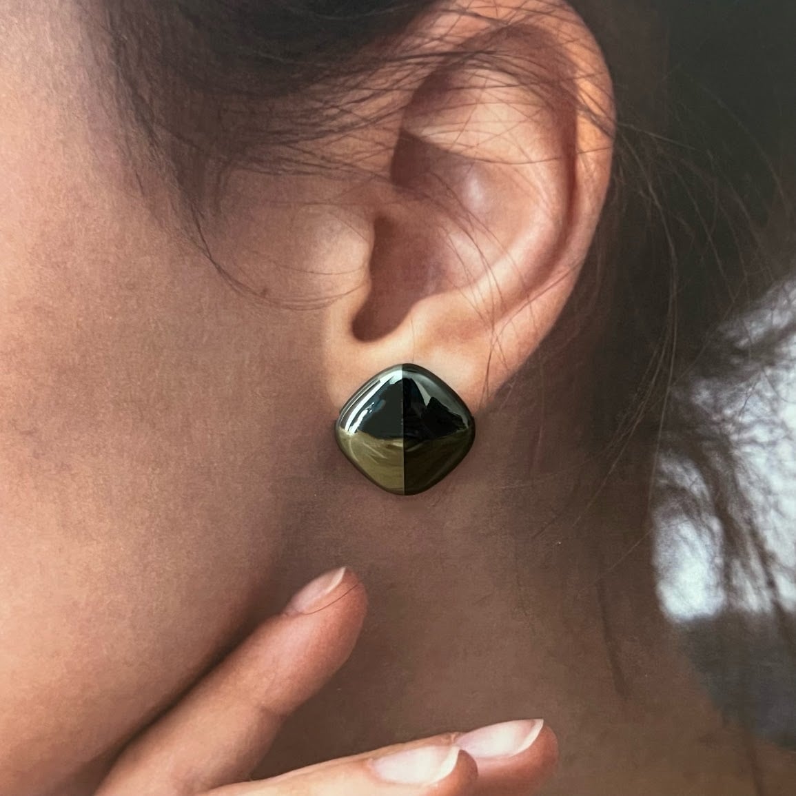 ブラックとグレイというコンビメッキが、シックな雰囲気を出しているイヤリングです。