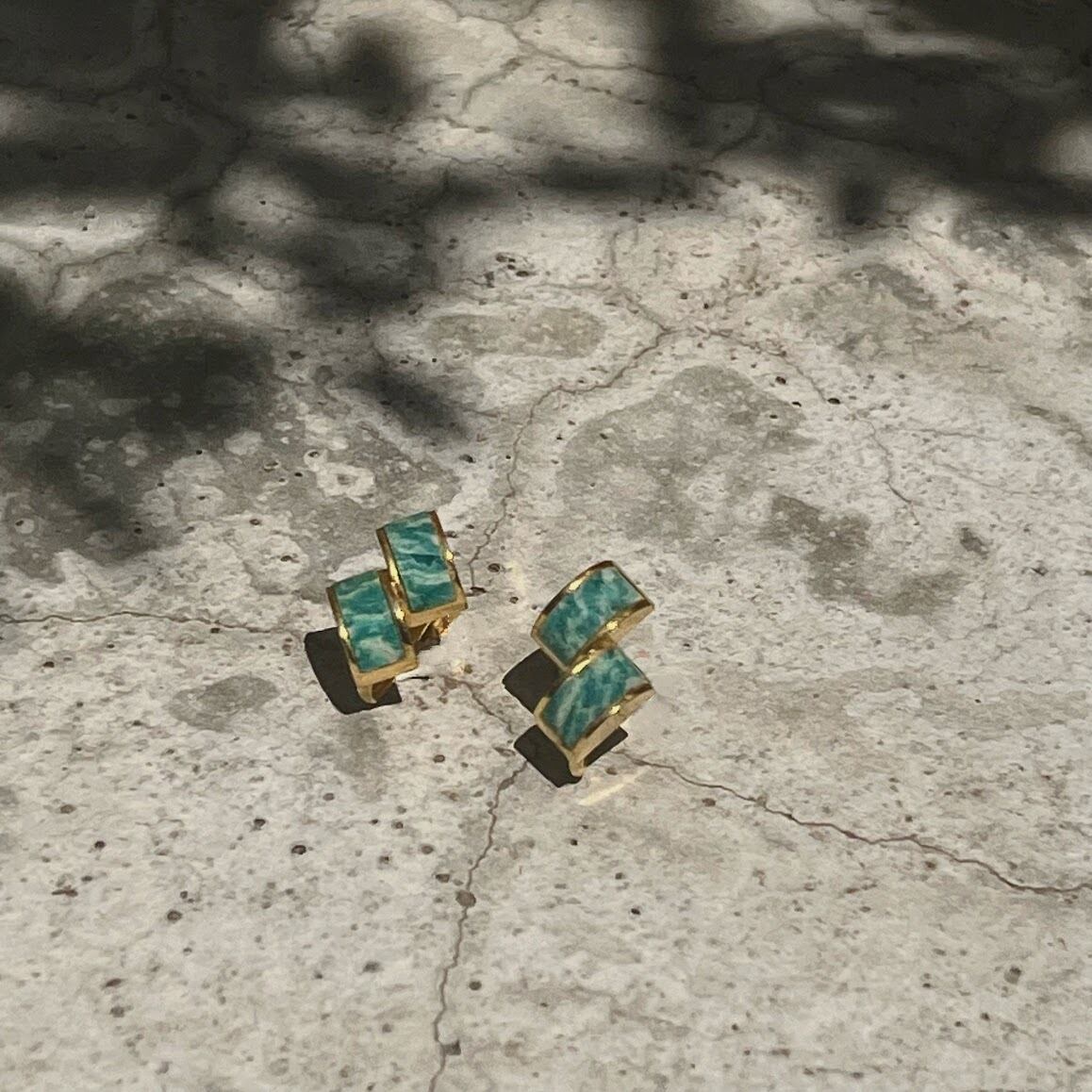 天然の石の模様がきれいな、2連風デザインのイヤリングです。