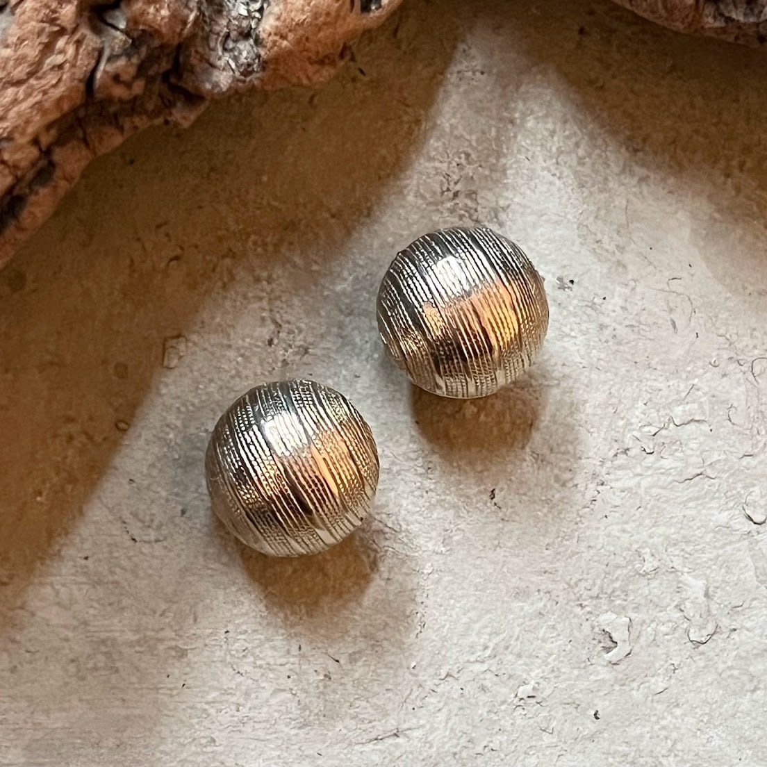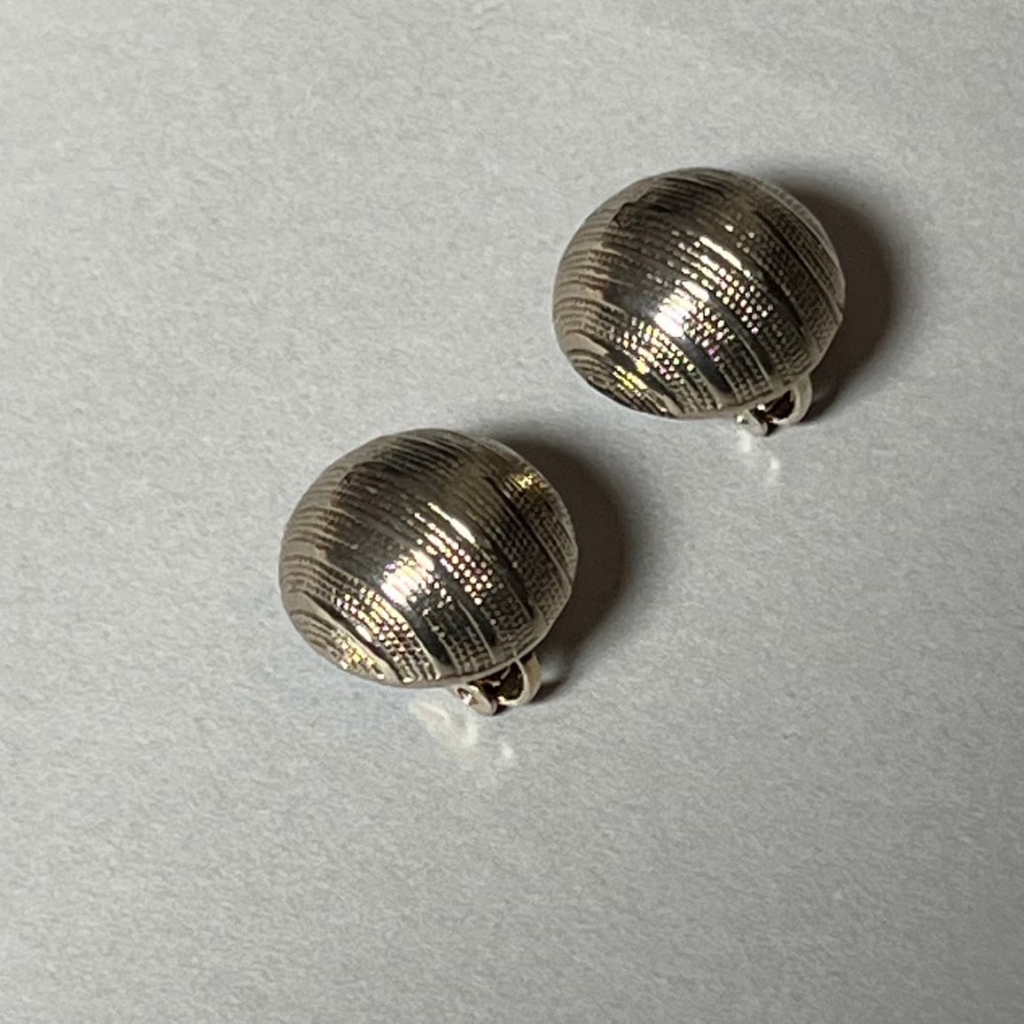 表面に細かなラインが入った合わせやすいメタルのデザインイヤリングです。