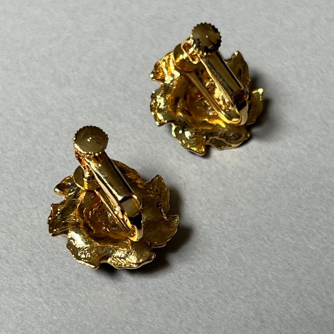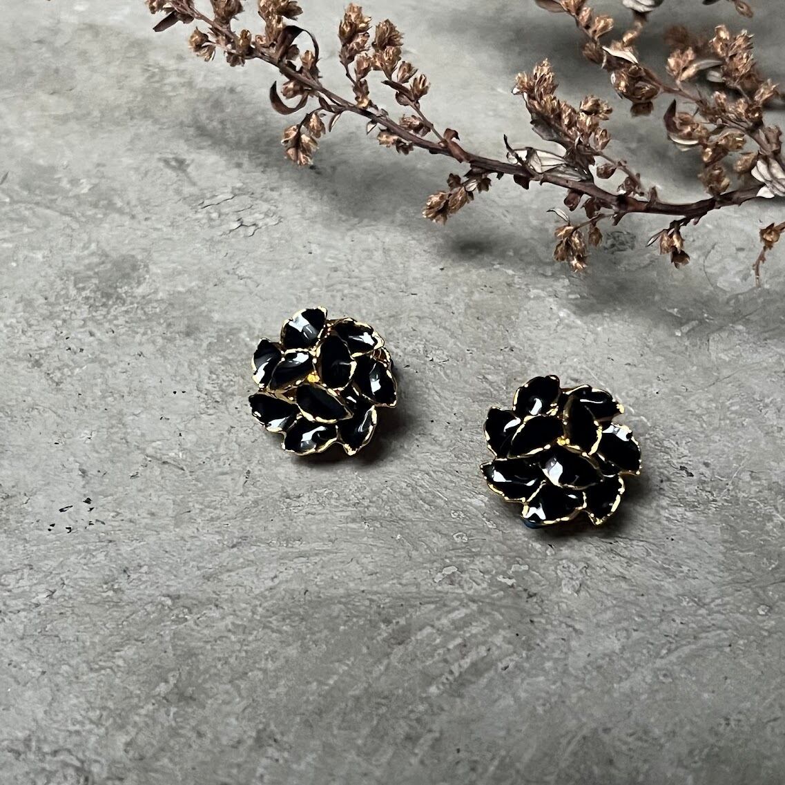 ブラックのカラーが、花モチーフでも甘すぎない印象になっているイヤリングです。