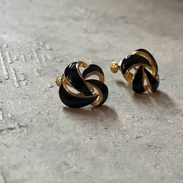 ゴールドの土台に、艶感あるブラックのカラーが、シックな雰囲気を出しているイヤリングです。