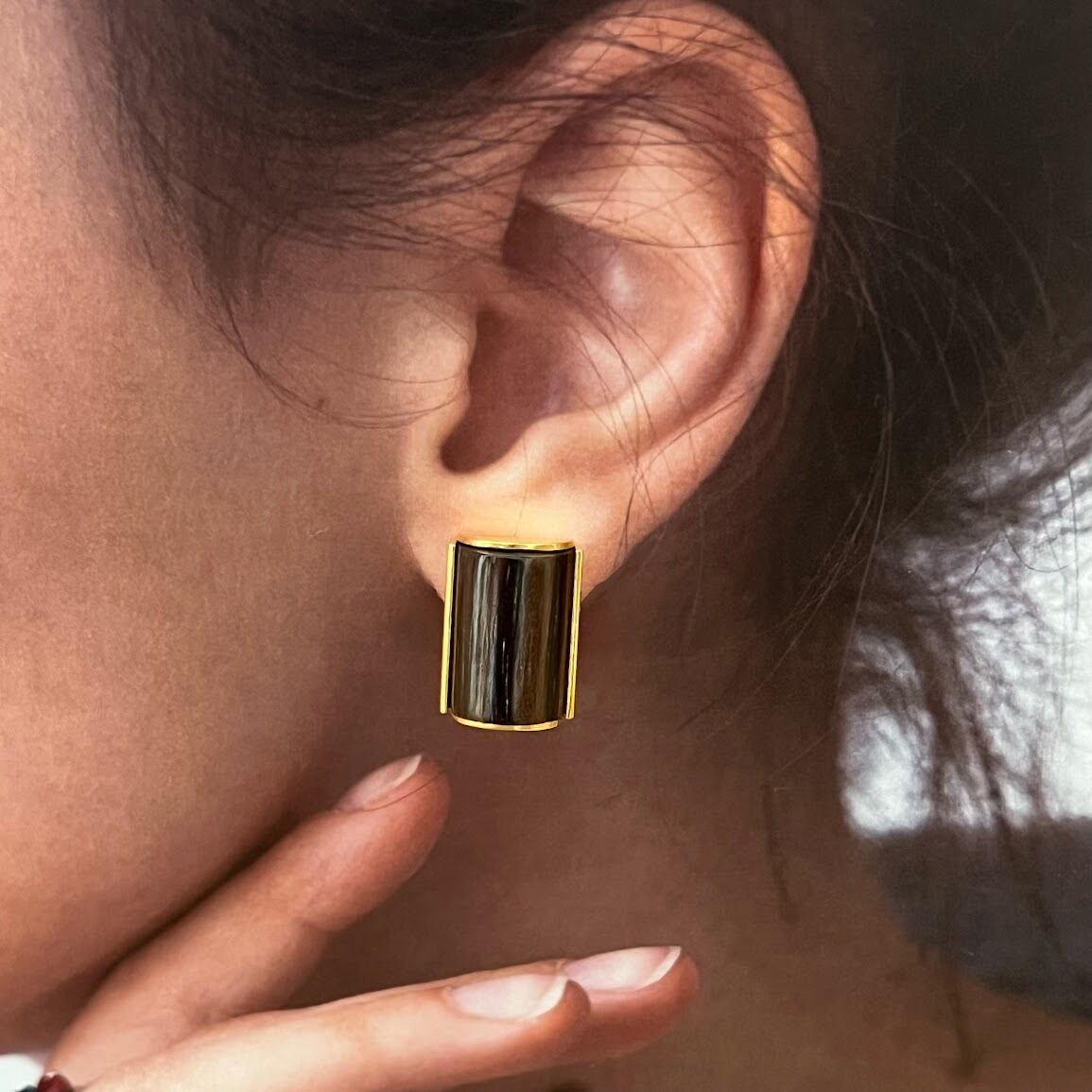 天然の木を使っているので、この世に1点しかない自然のデザインと、後ろから見た時のおしゃれな金具が魅力のイヤリングです。