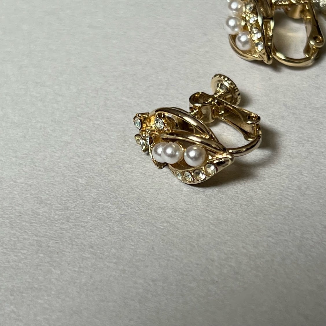 小粒の3つのパールとガラスがちりばめられた上品な雰囲気のイヤリングです。