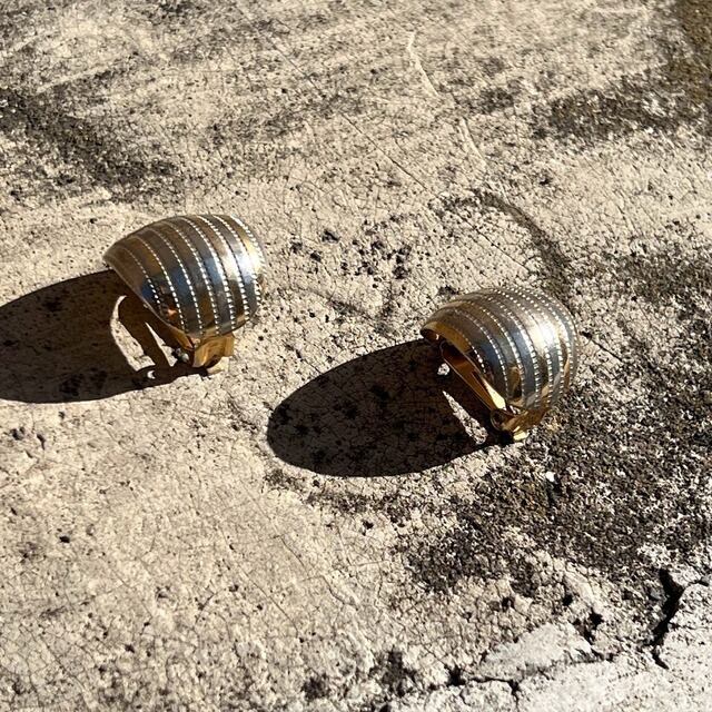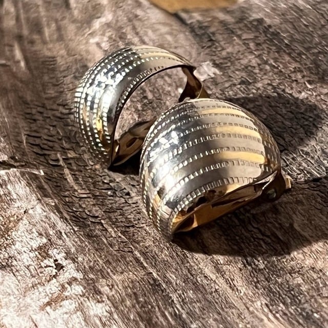 表面はコンビメッキになっていて、プレス加工された雰囲気が魅力のイヤリングです。