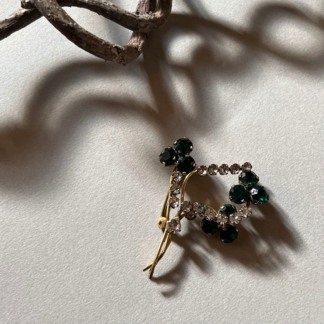 ガラスの輝きや枝の繊細さが、特徴のボタニカルモチーフのブローチです。
