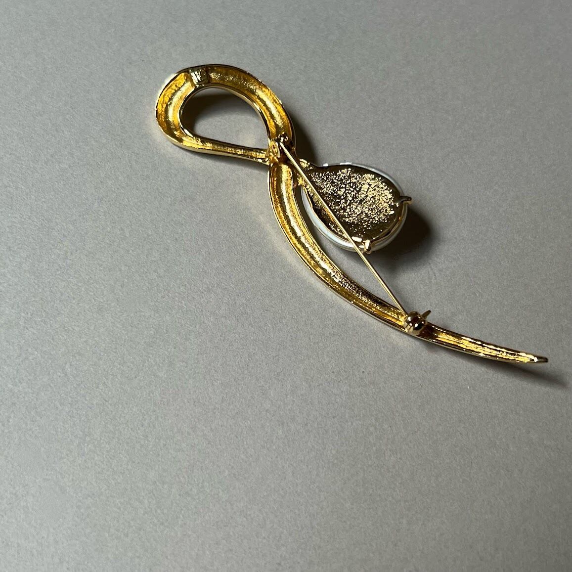 カーブした線のデザインが、ニュアンス感あるパールブローチです。