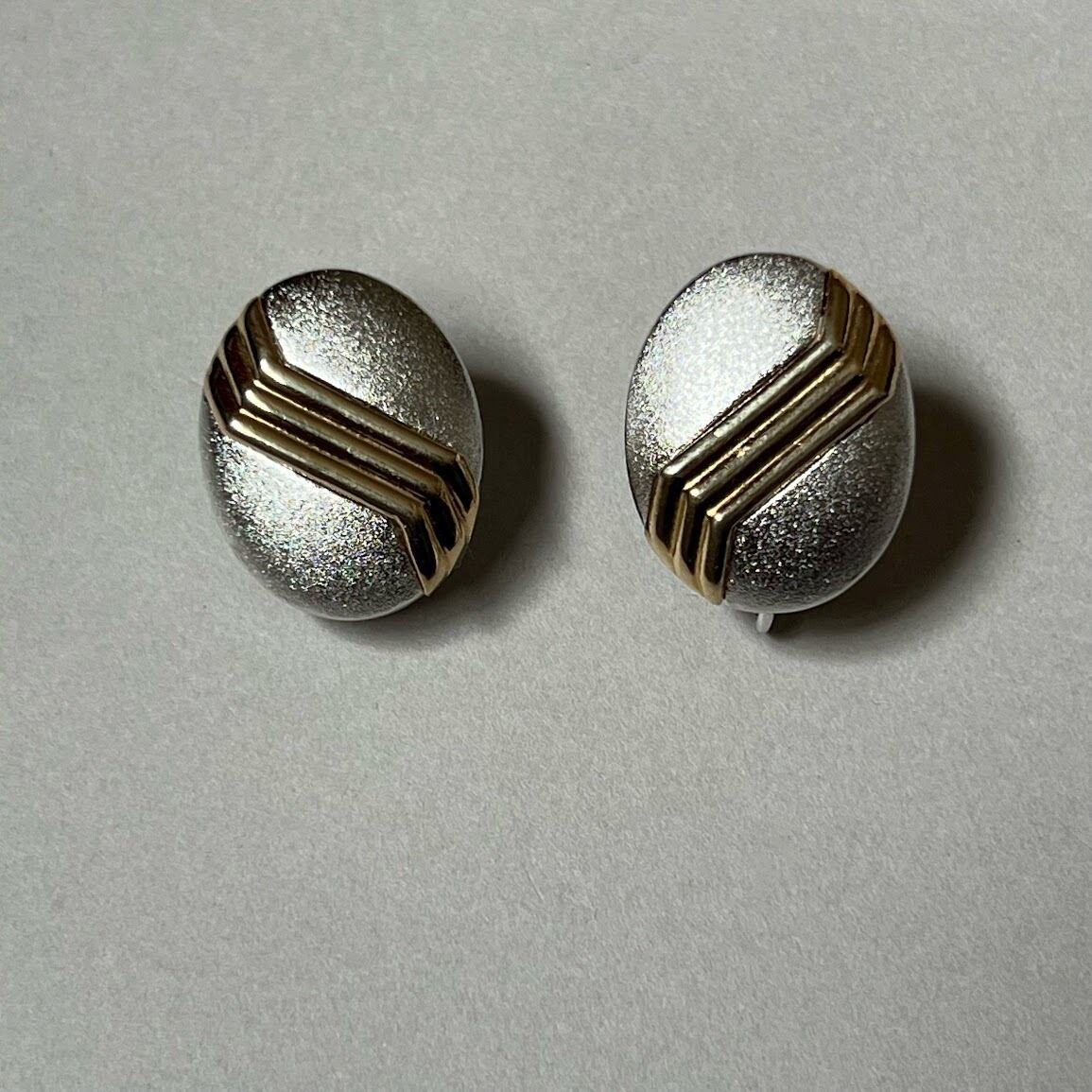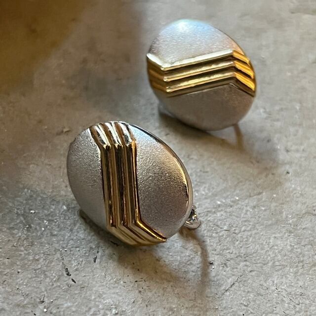 マットなロジウムに、ゴールドのラインがアクセントのイヤリングです。