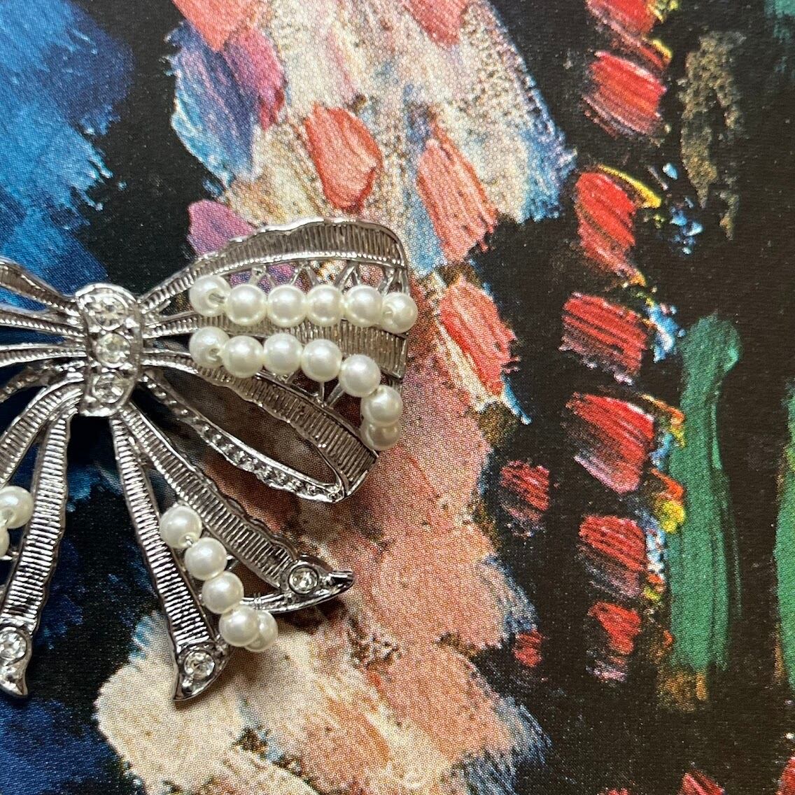ワイヤーを使った手の込んだ作りで、立体感あるパールのデザインが素敵なブローチです。