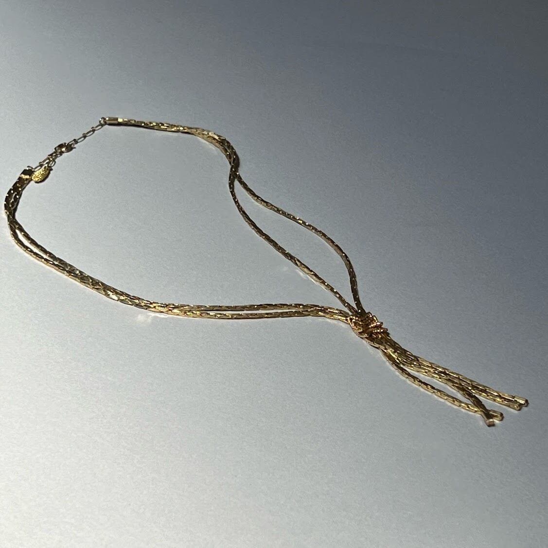 シンプルながらもY字部分やエンドパーツにも、さりげなくデザインが施されているネックレスです。
