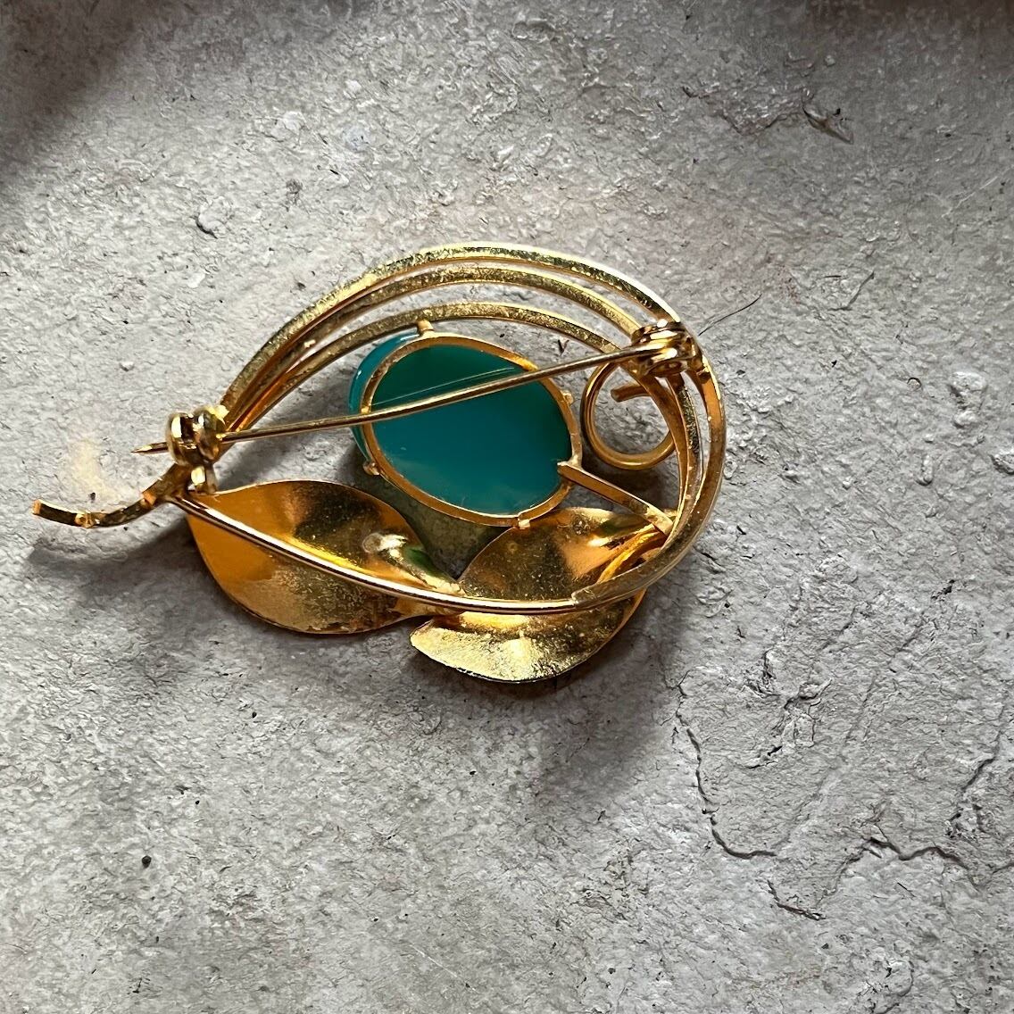 曲げ加工で作る立体感や、抜け感が良い天然石のブローチです。